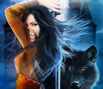Download Black Wolf Wolf Fantasy Woman Warrior Image