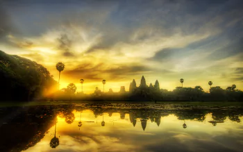 Download Temple Man Made Angkor Wat Sunrise Landscape Image