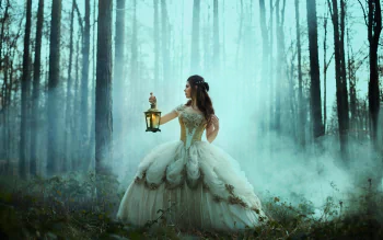 Lantern & Lace: Woman in the Smoky Forest