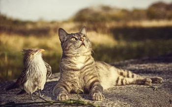 Cute Cat and Friends in Nature