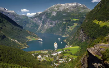 Download Cruise Ship Fjord Mountain Norway Man Made Village Image