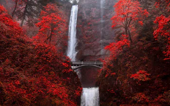 Download Fall Tree Bridge Nature Waterfall Image