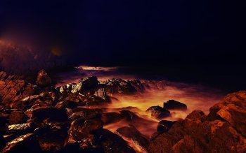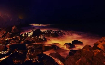 Mystical Spanish Coastline: Island Rocks Meet Nature's Night Beach