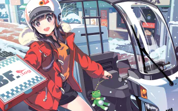 Snowbound Courier: Cheerful Anime Girl on Her Scooter