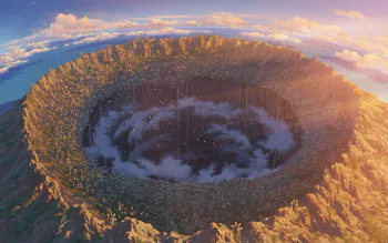 Anime Dawn Over the Abyss: Crater City Landscape